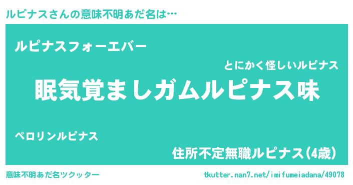 | ポケモン風あだ名 | 『ルックウザ』『ルピナダネ』 |