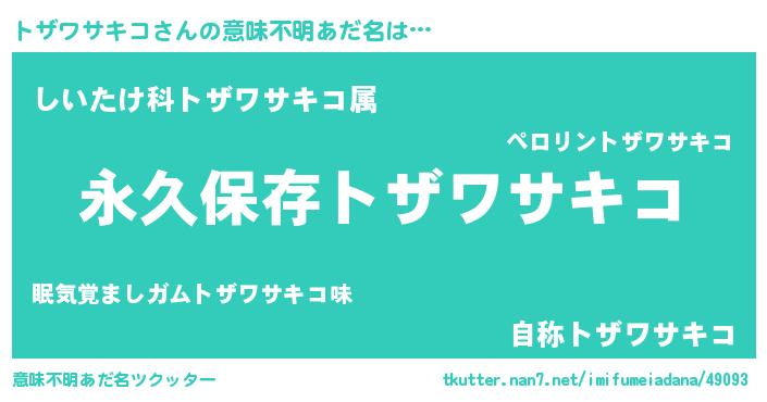 | 男性向けラノベタイトル風あだ名 | 『トザワサキコという概念が存在しない退屈な世界 』 |