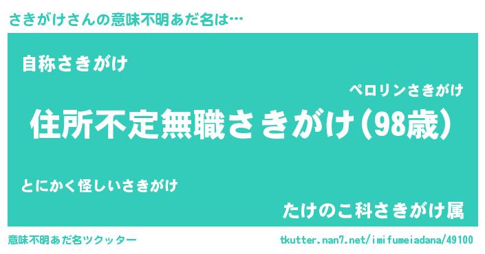 | ヒーロー風カッコイイあだ名 | 『仮面サキダー』『最強戦士サキガケ』 |