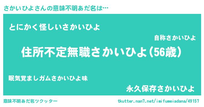 | 男性向けラノベタイトル風あだ名 | 『この素晴らしい世界にさかいひよを!』 |