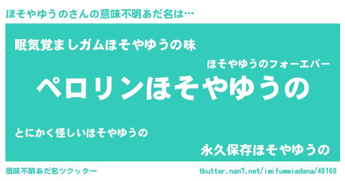 | 胡散臭い通販商品みたいなあだ名 | 『モテモテ間違いなし霊験あらたかなお札…その名も「ほそやゆうの」』 |