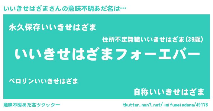 | 欧米人風あだ名 | 『アンジェラ・いいきせはざま』 |