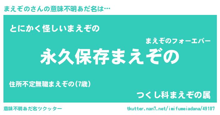 | 男性向けラノベタイトル風あだ名 | 『まえぞのという概念が存在しない退屈な世界 』 |
