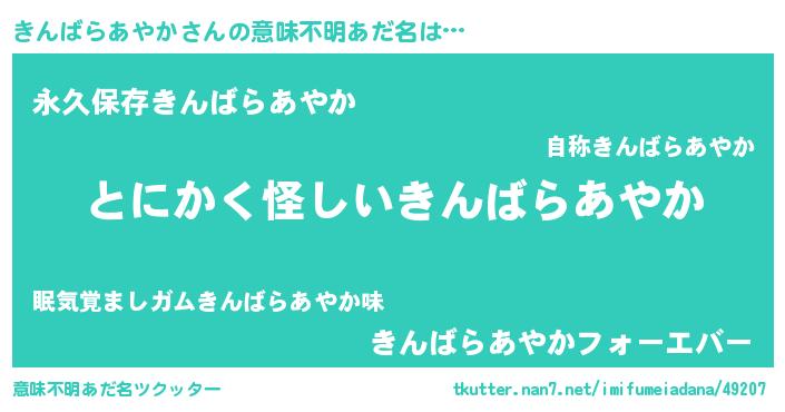 | ヒーロー風カッコイイあだ名 | 『暗黒騎士キン』『ネオキンバラアヤカ』 |