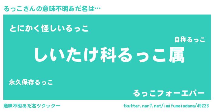 | 料理風あだ名 | 『るっこごはん』『るっこの豆乳スープ』 |