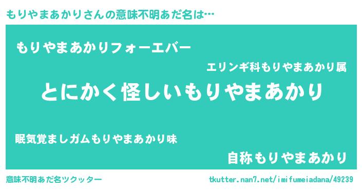 | ヒーロー風カッコイイあだ名 | 『暗黒騎士モリ』『ネオモリヤマアカリ』 |