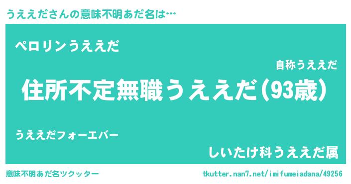 | 男性向けラノベタイトル風あだ名 | 『この素晴らしい世界にうええだを!』 |