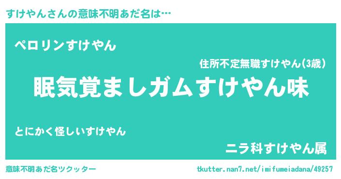 | ヒーロー風カッコイイあだ名 | 『正義の使者すけやん』『仮面スケダー』 |