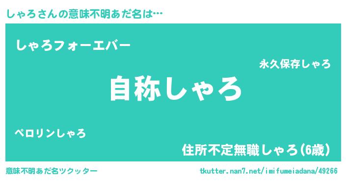 | ヘコむあだ名 | 『豆乳』『しゃろ(遠い目)』『しゃお』 |