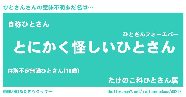 | 胡散臭い通販商品みたいなあだ名 | 『信頼と実績のサプリメント…その名も「ひとさん」』 |