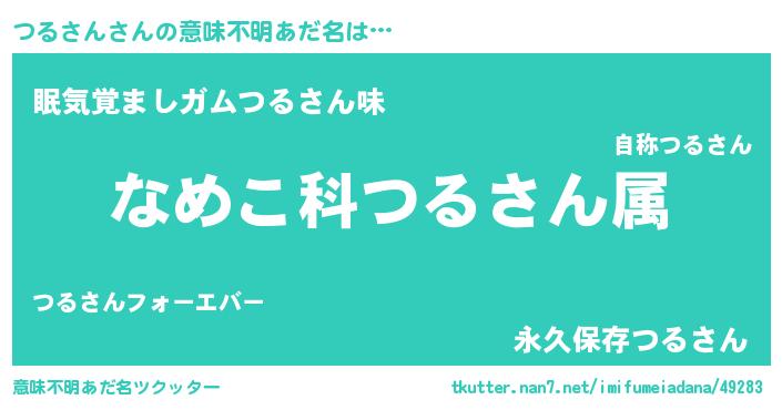 | 男性向けラノベタイトル風あだ名 | 『転生したらつるさんだった件』 |