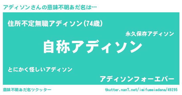 | 男性向けラノベタイトル風あだ名 | 『Re:アディソンから始める異世界生活』 |