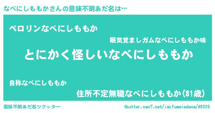 | 伝説のあだ名 | 『孤高の僧侶なべにしももか』 |