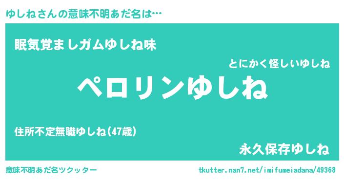 | 男性向けラノベタイトル風あだ名 | 『ゆしねに滅ぼされるだけの簡単なお仕事です』 |