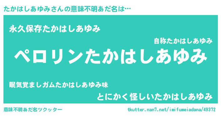 | ヒーロー風カッコイイあだ名 | 『スーパータカハシアユミ』 |