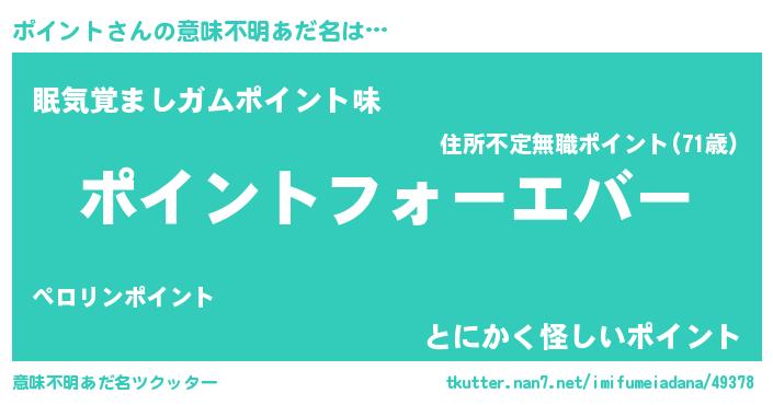 | 女子向けラノベタイトル風あだ名 | 『ポイントの雑貨屋さん』 |