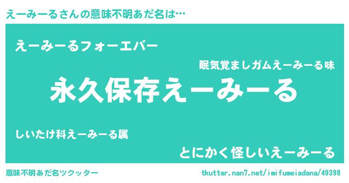 | 男性向けラノベタイトル風あだ名 | 『えーみーるという概念が存在しない退屈な世界 』 |