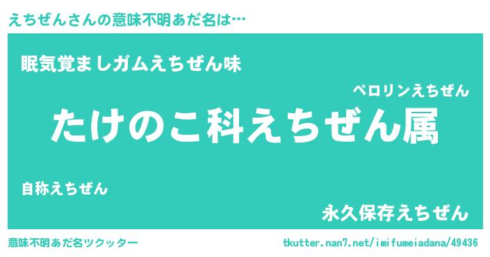| 男性向けラノベタイトル風あだ名 | 『転生したらえちぜんだった件』 |