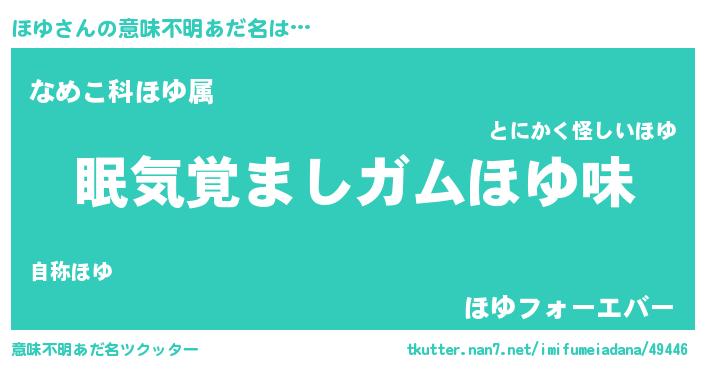 | ヒーロー風カッコイイあだ名 | 『天空の使者ほゆ』『ウルトラほゆマン』 |