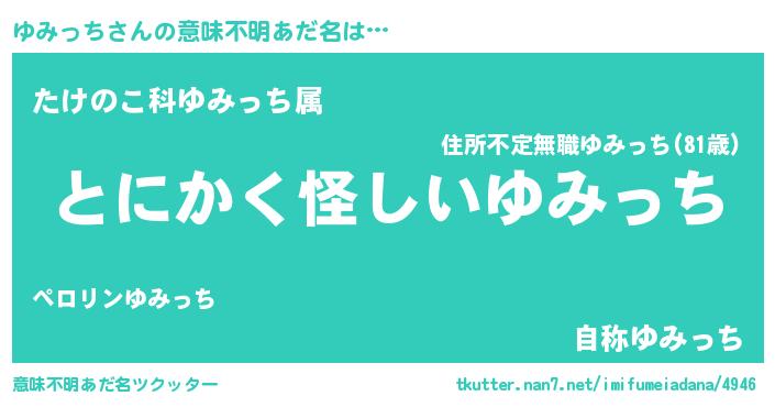| 男性向けラノベタイトル風あだ名 | 『ゆみっちの嫁は女の子じゃないと思った?』 |