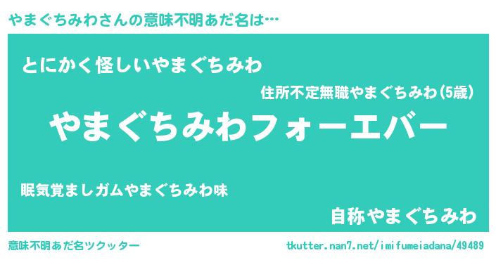 | 男性向けラノベタイトル風あだ名 | 『やはりやまぐちみわの青春ラブコメはまちがっている 』 |