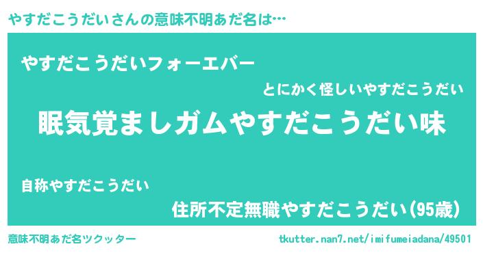 | 欧米人風あだ名 | 『ダニエルやすだこうだい』 |