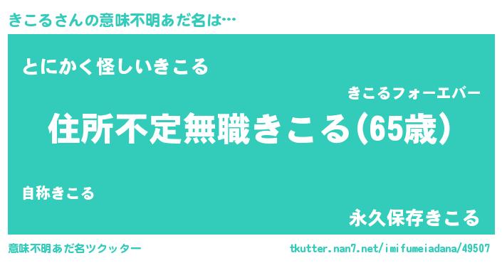 | 男性向けラノベタイトル風あだ名 | 『この素晴らしい世界にきこるを!』 |