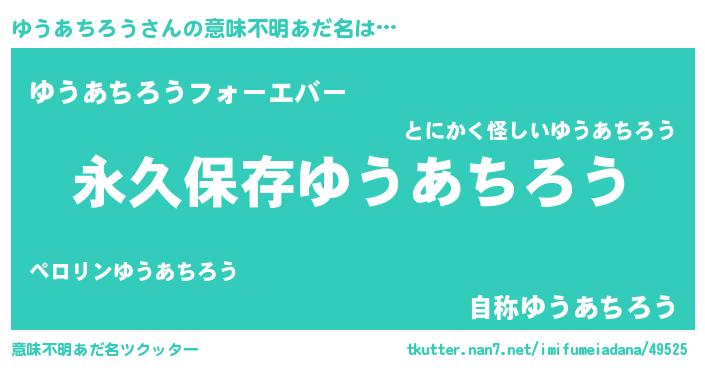 | 胡散臭い通販商品みたいなあだ名 | 『絶対に幸福をもたらす健康食品…その名も「ゆうあちろう」』 |
