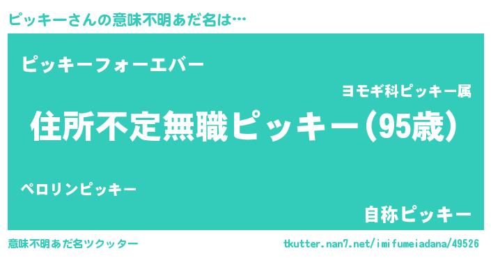 | 女子向けラノベタイトル風あだ名 | 『乙女ゲームの破滅フラグしかない悪役ピッキーに転生してしまった…』 |