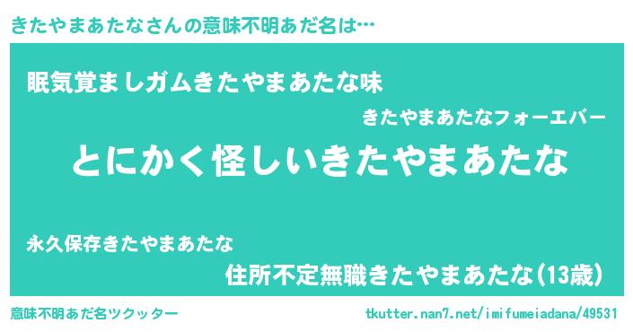 | 女子向けラノベタイトル風あだ名 | 『きたやまあたな様がみてる』 |
