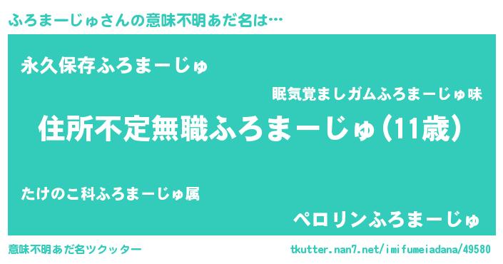 | 男性向けラノベタイトル風あだ名 | 『魔弾の王とふろまーじゅ』 |