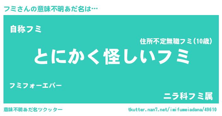 | ポケモン風あだ名 | 『ヒフミ』『フミセウス』『フミゴンZ』 |