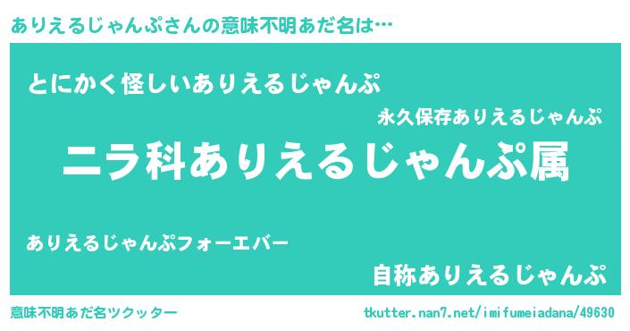 | 女子向けラノベタイトル風あだ名 | 『ありえるじゃんぷの玉の輿計画!』 |