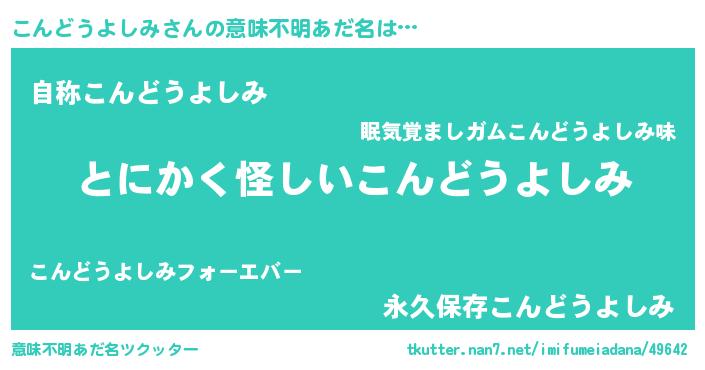 | 男性向けラノベタイトル風あだ名 | 『こんどうよしみの嫁は女の子じゃないと思った?』 |