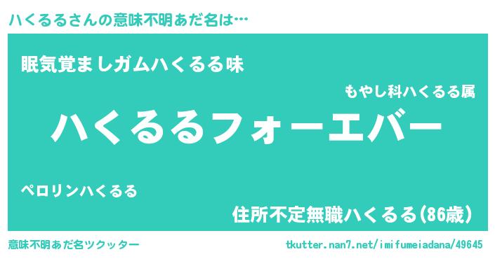 | 欧米人風あだ名 | 『ハくるるクリステル』 |