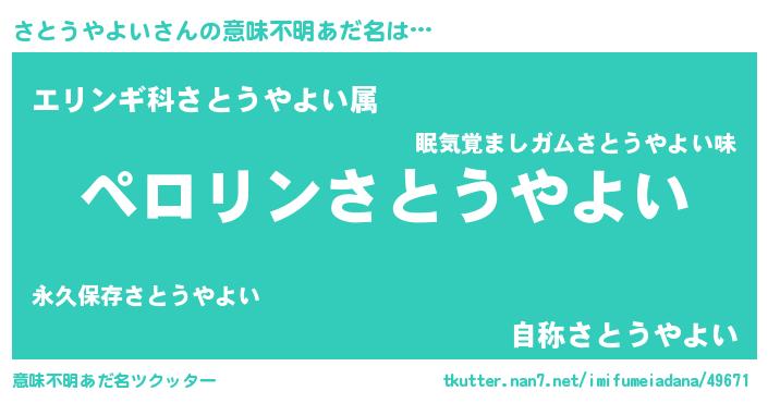 | ヒーロー風カッコイイあだ名 | 『スーパーサトウヤヨイ』『仮面サトダー』 |