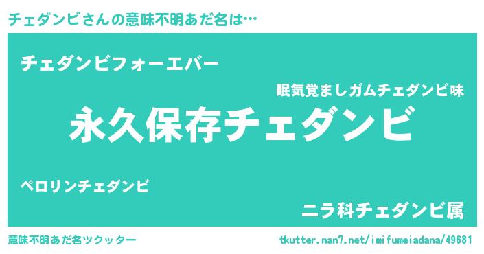 | 男性向けラノベタイトル風あだ名 | 『誰もが恐れるあのチェダンビが、ぼくの専属メイドになるようです。』 |