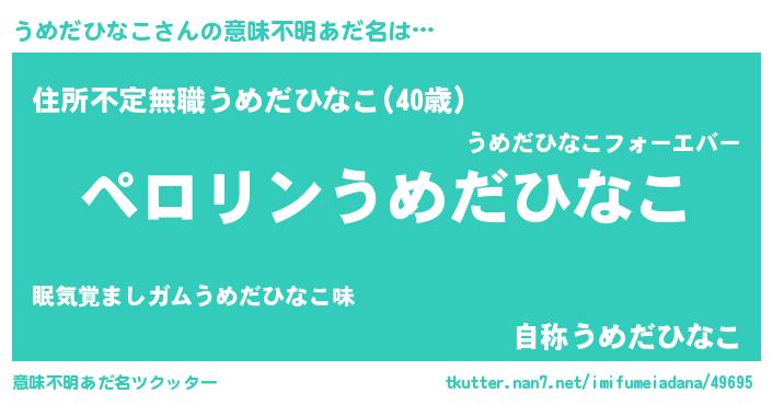 | ポケモン風あだ名 | 『ウメチュウ』『ウーメイ』 |