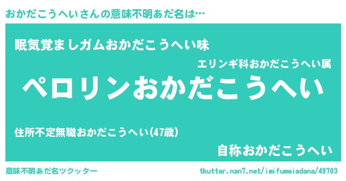 女子向けラノベタイトル風あだ名 | 『(仮)おかだこうへいのやんごとなき事情』 |