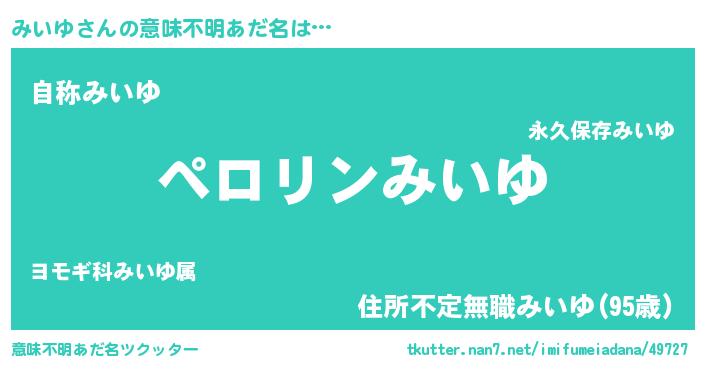 | 男性向けラノベタイトル風あだ名 | 『みいゆの憂鬱』 |