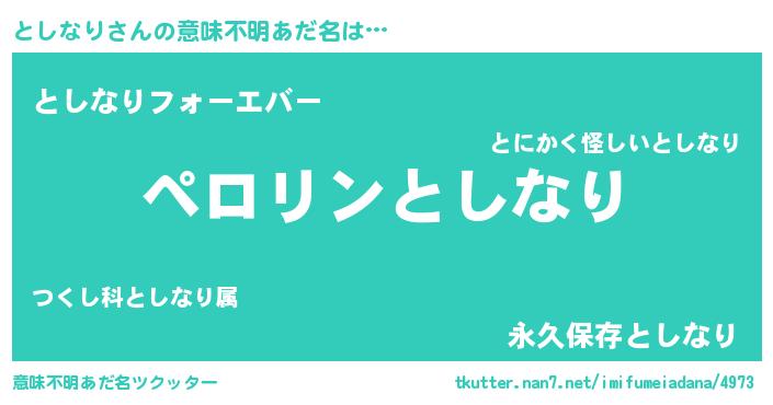 | 胡散臭い通販商品みたいなあだ名 | 『必ず成功するブレスレット…その名も「としなり」』 |