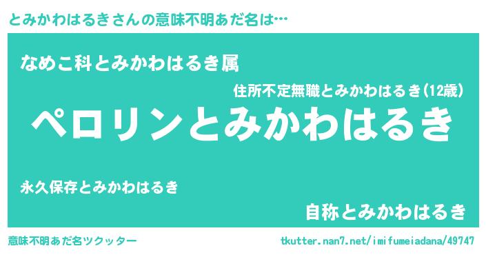 | 胡散臭い通販商品みたいなあだ名 | 『必ず成功する霊験あらたかなお札…その名も「とみかわはるき」』 |