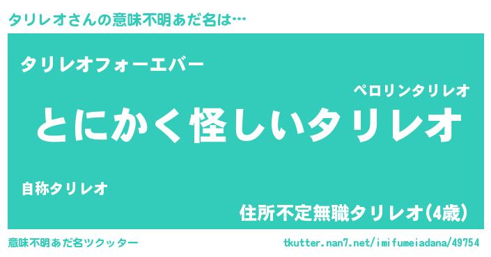 | 男性向けラノベタイトル風あだ名 | 『うちのタリレオが世界を掌握している!』 |