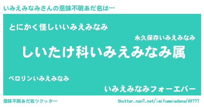 | 料理風あだ名 | 『いみえみなみごはん』 |