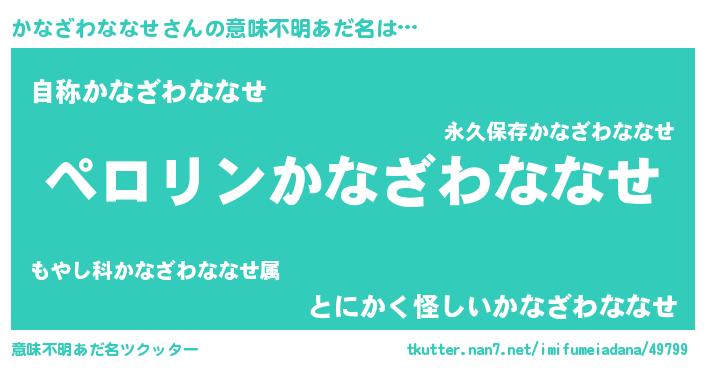 | 胡散臭い通販商品みたいなあだ名 | 『モテモテ間違いなし霊験あらたかなお札…その名も「かなざわななせ」』 |