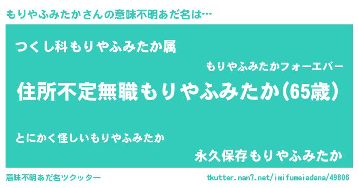 | 女子向けラノベタイトル風あだ名 | 『乙女ゲームの破滅フラグしかない悪役もりやふみたかに転生してしまった…』 |
