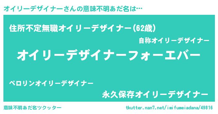 | ファンタジー風あだ名 | 『エターナルオイリーデザイナーー』 |