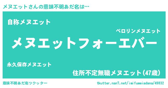 | ファンタジー風あだ名 | 『エターナルメヌエットー』『ゼメヌトゥ』 |