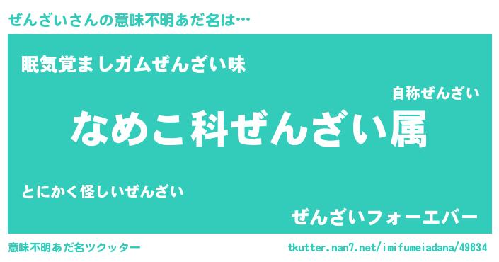 | ヒーロー風カッコイイあだ名 | 『愛の使者ぜんざい』『最強戦士ゼンザイ』 |