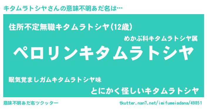 | 胡散臭い通販商品みたいなあだ名 | 『モテモテ間違いなし霊験あらたかなお札…その名も「キタムラトシヤ」』 |